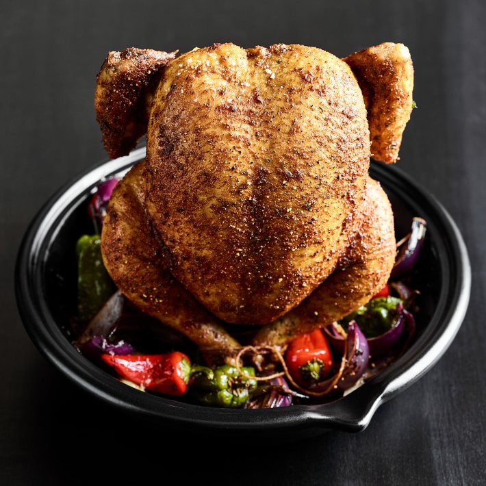 Emile Henry Chicken Roaster Recipe / Emile Henry Chicken Roasting Pan 4.0 Litres - Interismo ... / Thanks to the lid, the steam circulates perfectly around the.. A 4.5quart roaster that can cook moist, tender chicken and roast delicious beef. I won first prize out of about 50 entries. It can be used on the barbeque, (gas, charcoal, natural wood or electric cooking), in the oven, and under the broiler. Savor the aromas of fresh spices and perfectly cooked chicken with the easy. Place the whole chicken on top of the chicken roaster so the chicken is sitting on the middle pole.